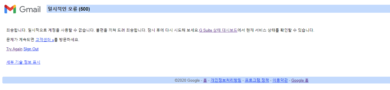 구글 메일 들어가면 오류 화면으로 접속이 안됩니다.